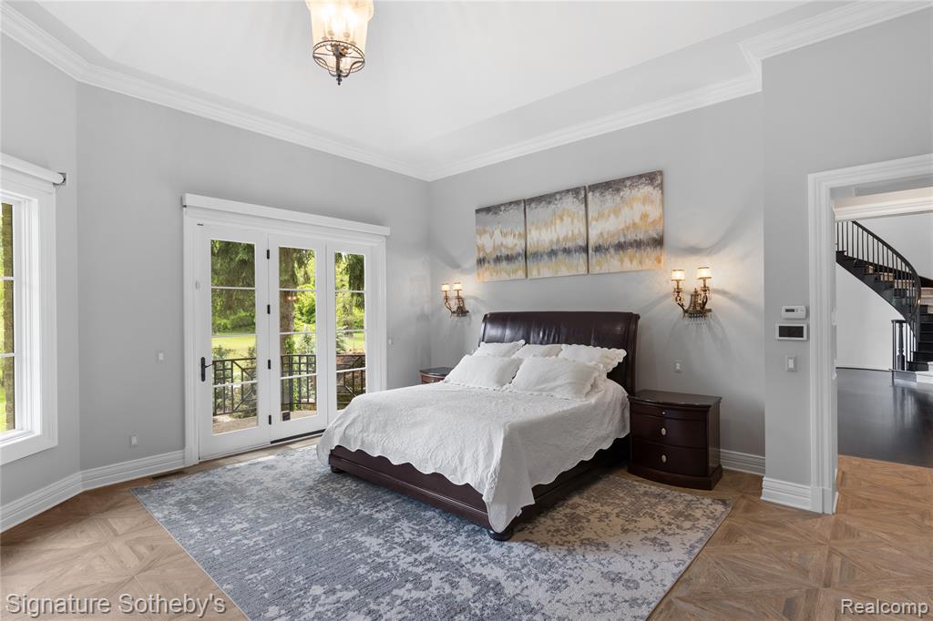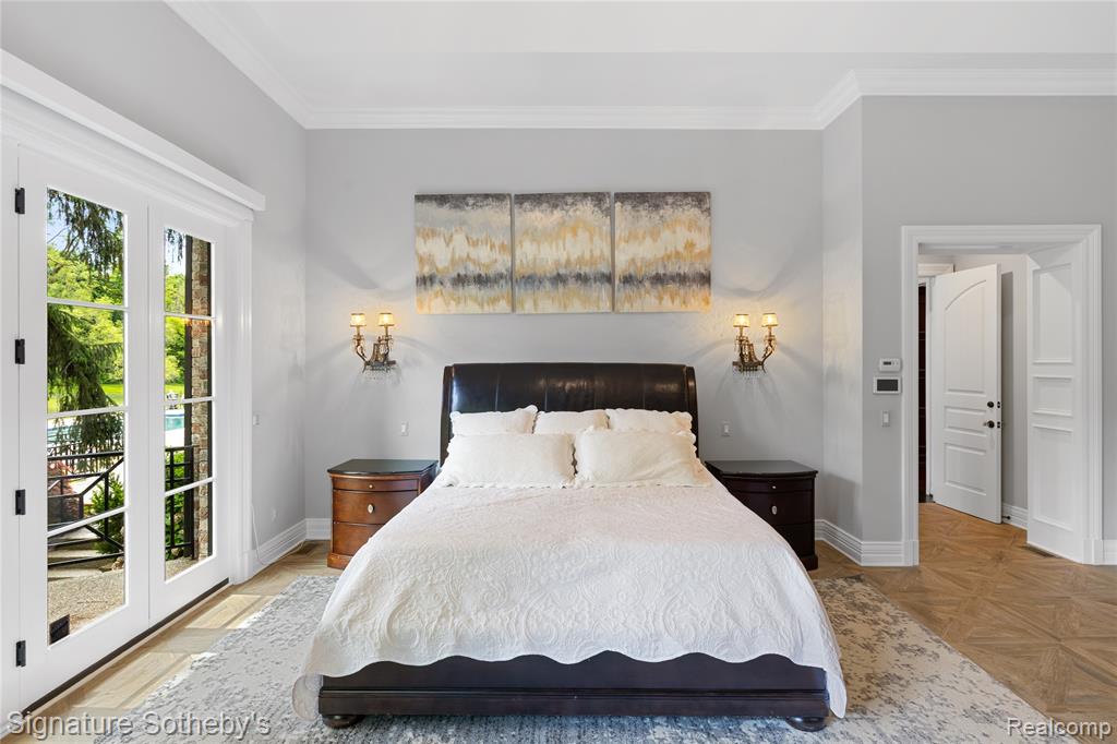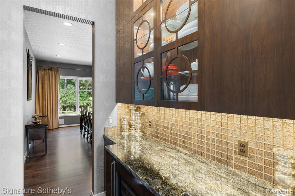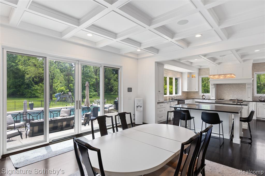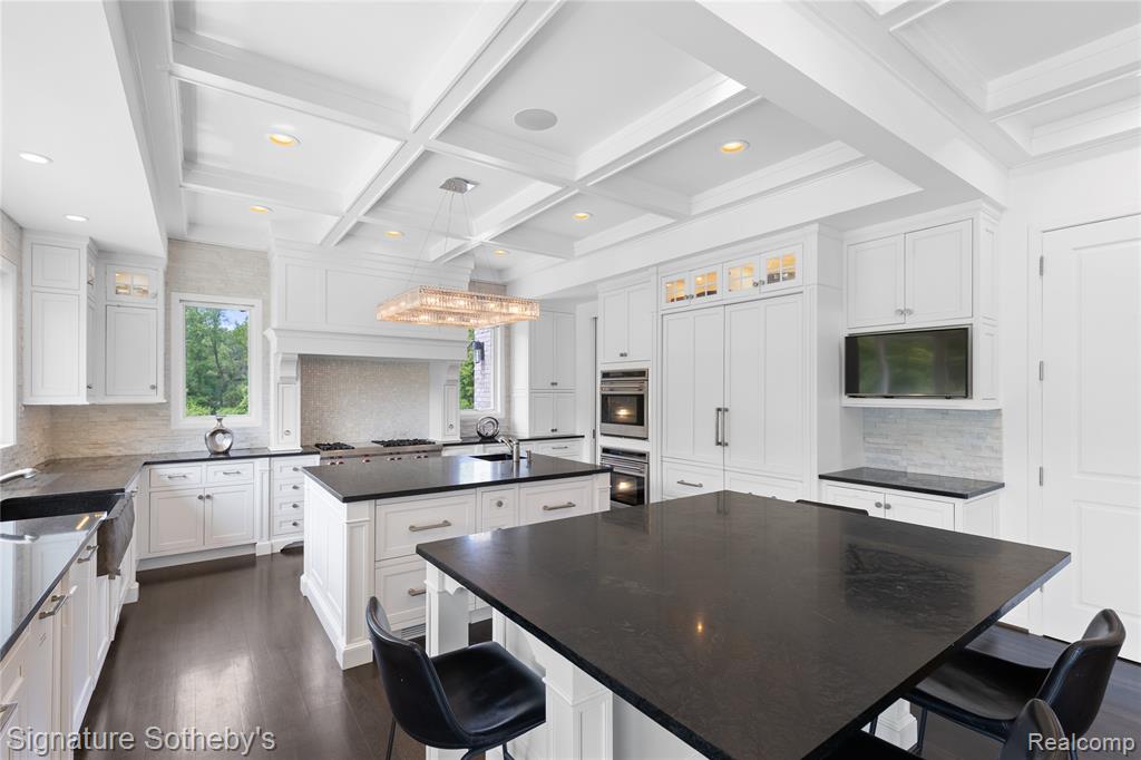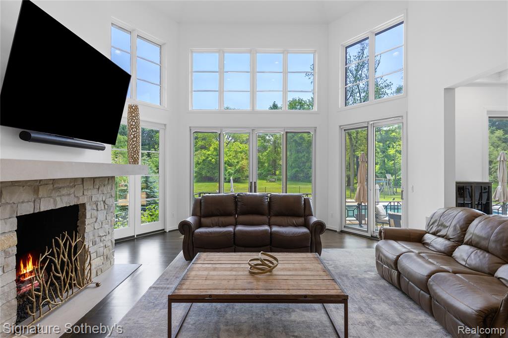 Set on 5.5 manicured acres minutes from downtown Franklin, this estate blends commanding architecture with a warm, modern sensibility. Offering over 11,000 square feet of living space, with a fully finished lower level, the home features 6 ensuite bedrooms and 7.2 bathrooms—crafted for grand-scale living and effortless entertaining. A soaring double-height foyer sets an elegant tone, flowing into the main living space where rich hardwoods and coffered ceilings anchor the open floor plan. The chef’s kitchen is a study in symmetry and functionality, fitted with Sub-Zero and Wolf appliances, custom cabinetry, and double oversized islands that connect seamlessly to the great room, where floor-to-ceiling windows frame serene views of the grounds. A richly paneled library with built-in shelving, a fireplace, and a dramatic arched window offers a private setting for work, reading, or quiet reflection. The rare first-floor primary suite offers a true sense of retreat. Designed with privacy and comfort in mind, it features dual walk-in closets and two completely separate spa-inspired bathrooms—each appointed with high-end finishes, custom vanities, and generous showers. A private balcony off the suite offers a tranquil vantage point to overlook the estate’s expansive acreage, creating a seamless blend of luxury and nature. Downstairs, the walkout lower level has been transformed into a lifestyle destination: a custom-built theater with 8K projection, a full sports court with new flooring, and an expansive living area with full kitchen. Outdoors, a fully resurfaced gunite pool, new mechanicals, and an extended patio provide the ideal backdrop for seasonal entertaining. Additional highlights include a Control4 smart home system, new full-home generator, five furnaces with corresponding AC units, an attached 4-car garage, and so much more. This is a legacy-caliber offering—sophisticated, bold, and completely turnkey. |